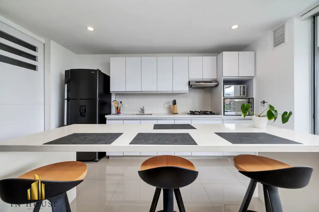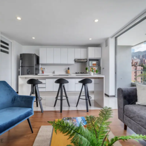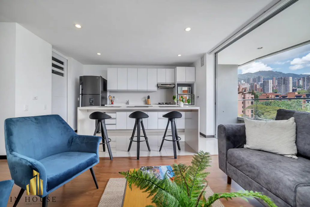 Hermosa y cómoda suite para disfrutar, dos habitaciones, aire acondicionado en la habitación principal, TV y WiFi súper rápido, dos baños, sala de estar y cocina completa, gimnasio y una hermosa piscina con la mejor vista de la ciudad desde el amplio balcón. A menos de 5 minutos de los mejores centros comerciales, restaurantes y bares de Medellín. Al mismo tiempo, puedes disfrutar de un espacio tranquilo y sofisticado.